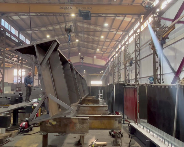 Die Revaz SA unter der Leitung von Fabrice Borer hat den EHC Saastal und das Ingenieurbüro Cordonnier & Rey SA eingeladen, um ihr Werk zu besichtigen. Momentan werden die großen Stahlträger für die Erlebnisbank-Arena gefertigt.